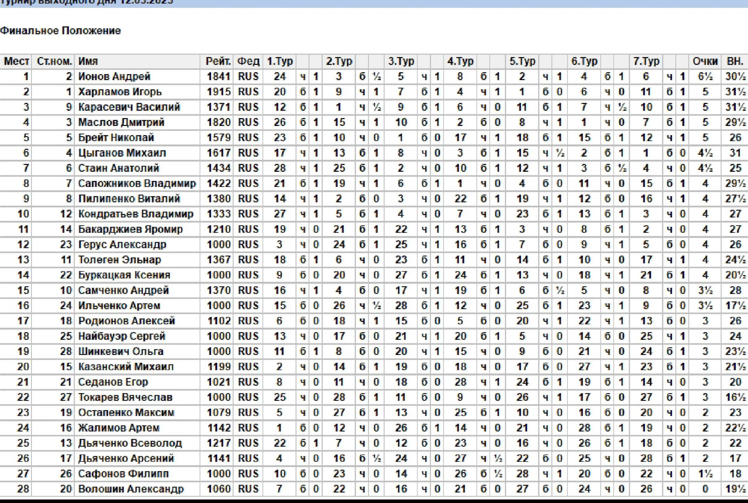 В ГШК на Дмитриева прошел традиционный турнир выходного дня по быстрым шахматам для всех желающих. Контроль 10+5. Туров 7. Количество участников 28.
