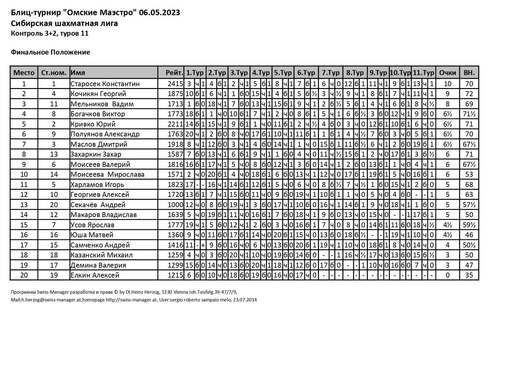 В ГШК на Дмитриева прошел коммерческий блиц-турнир от Сибирской шахматной лиги. Контроль 3+2. Туров 11. Количество участников 20.