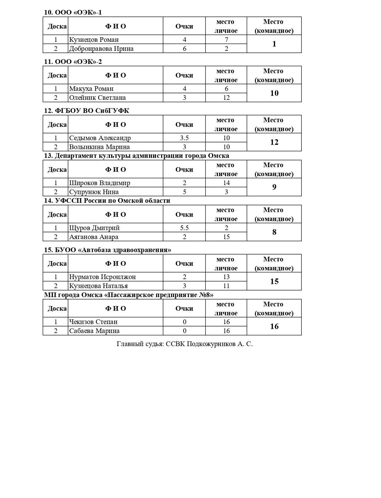 1 место — ООО «ОЭК»-1 (Кузнецов Роман, Добронравова Ирина)