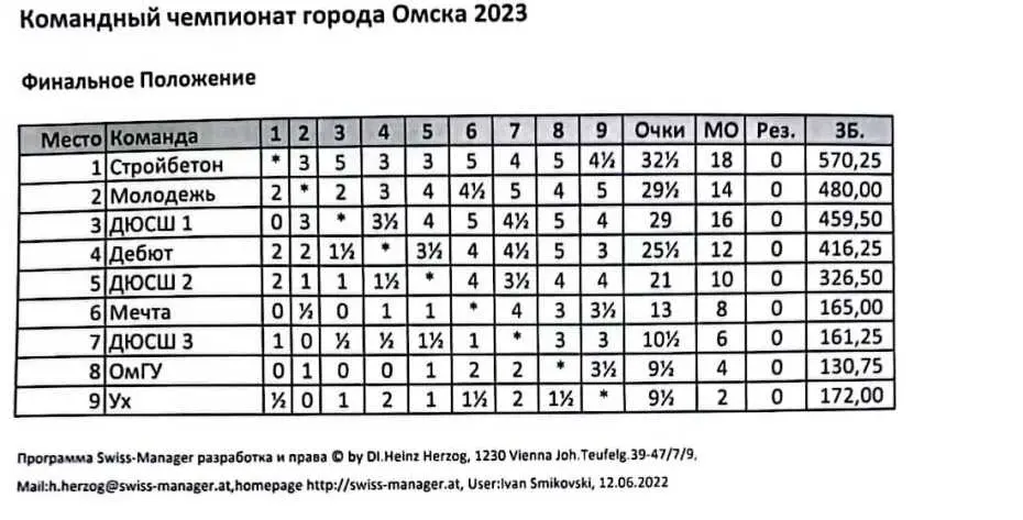 В воскресенье, 28 мая, в ДЮСШ №15 состоялось Командное первенство города Омска по быстрым шахматам. Состав команды: 4 мужских доски + 1 женская доска. Контроль 8+3. Количество команд 9. Круговая система.