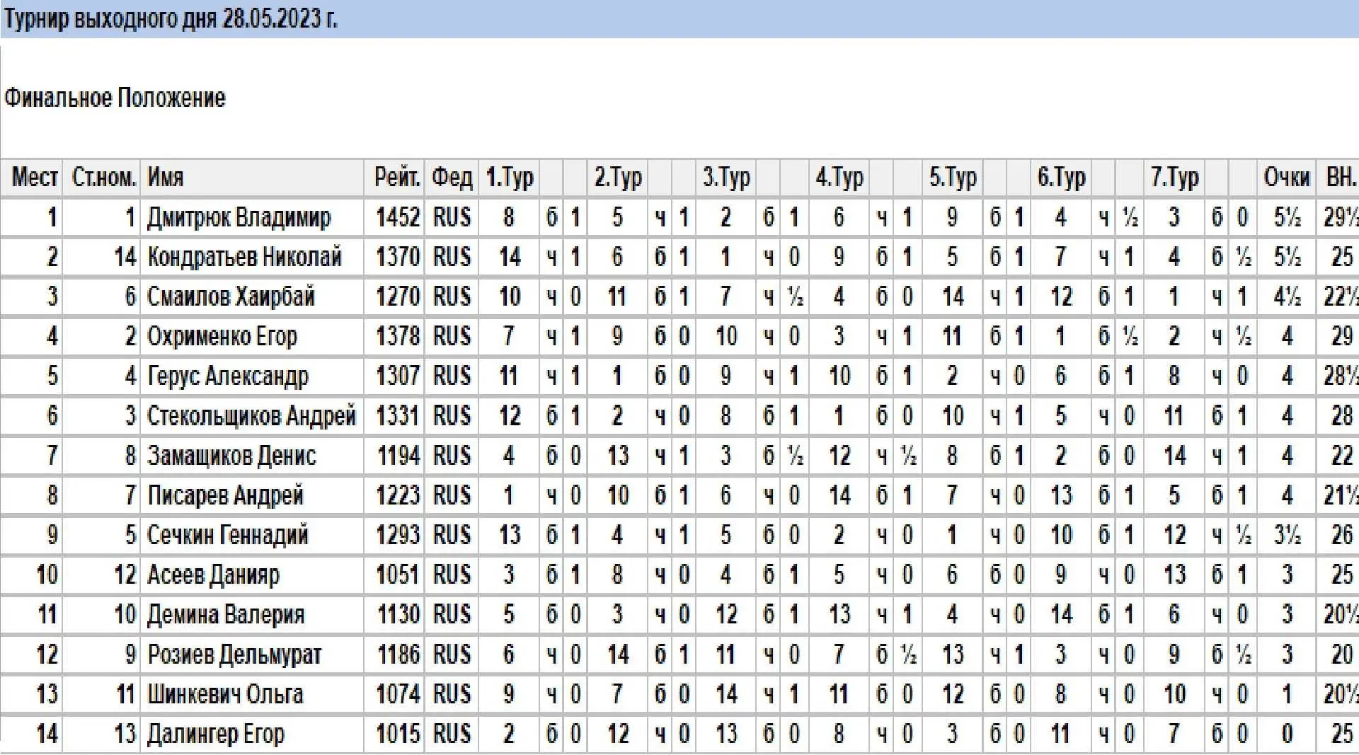 Итоги рапида в ГШК (28 мая 2023 г.)