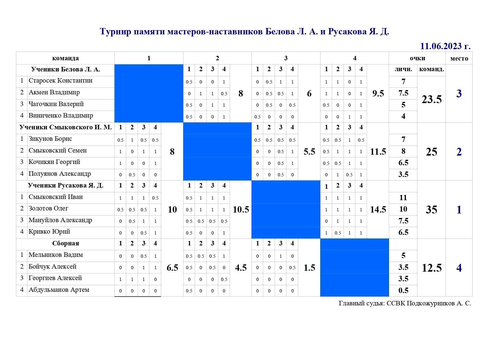 В ГШК на Дмитриева прошел традиционный блиц-турнир памяти мастеров-наставников Льва Андреевича Белова и Якова Давыдовича Русакова, в котором за победу по схевенингенской системе борются четыре команды сильнейших шахматистов города Омска. Контроль 3+2. Состав команды: 4 человека.