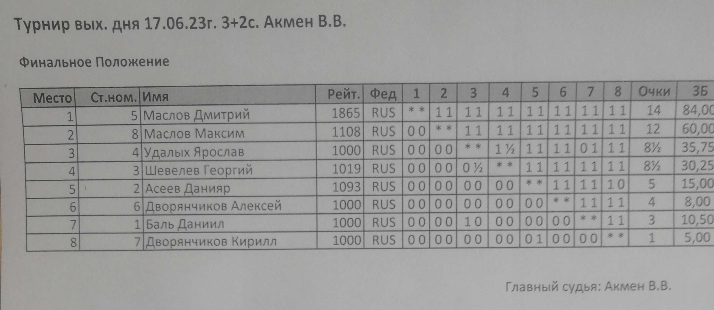 Результаты блица в ГШК (17 июня 2023 г.)