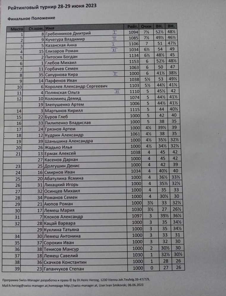 Для воспитанников ДЮСШ №15 прошел турнир по быстрым шахматам. К участию приглашались начинающие с рейтингом ФШР 1000-1150. Контроль 10+5. Туров 9. Количество участников 39.