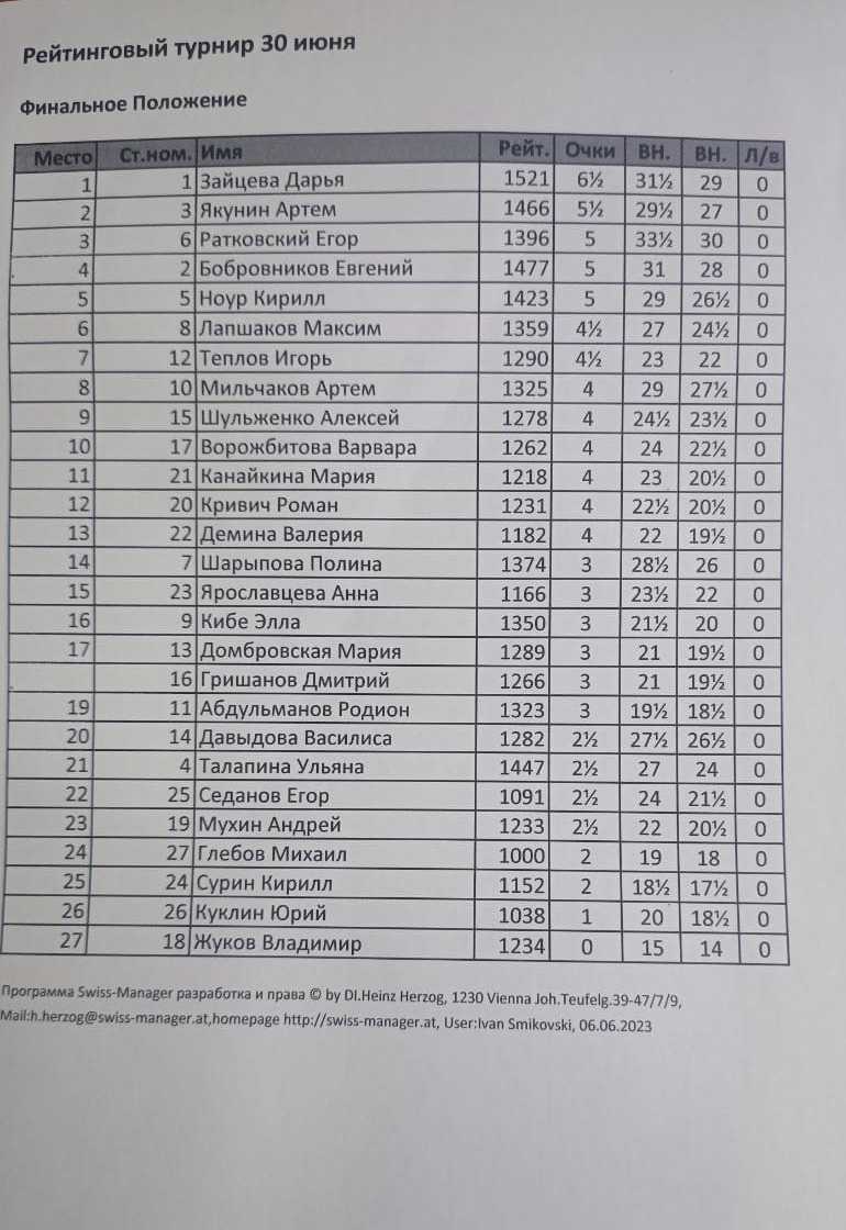 В ДЮСШ №15 прошел рапид для юных шахматистов с рейтингом ФШР 1150-1500. Контроль 8+3. Туров 7. Количество участников 27.