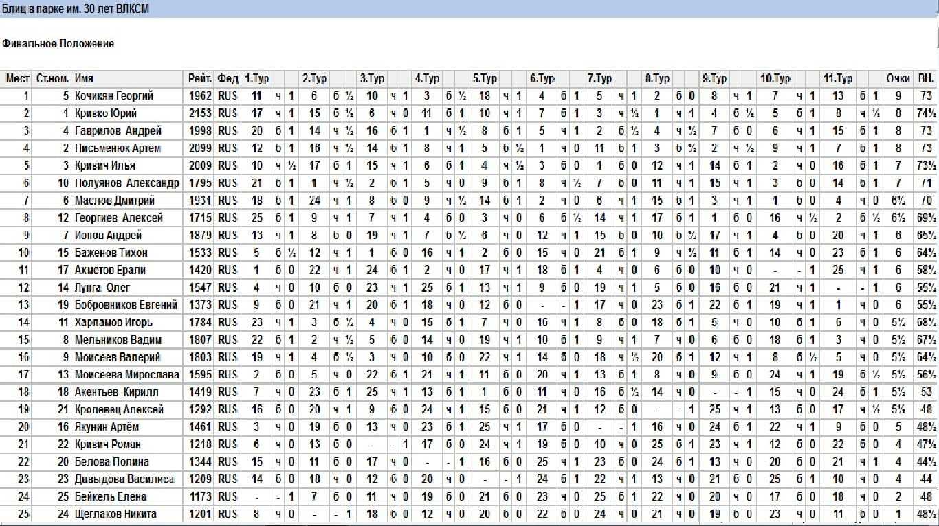 1 место — Кочикян Георгий 2 место — Кривко Юрий 3 место — Гаврилов Андрей
