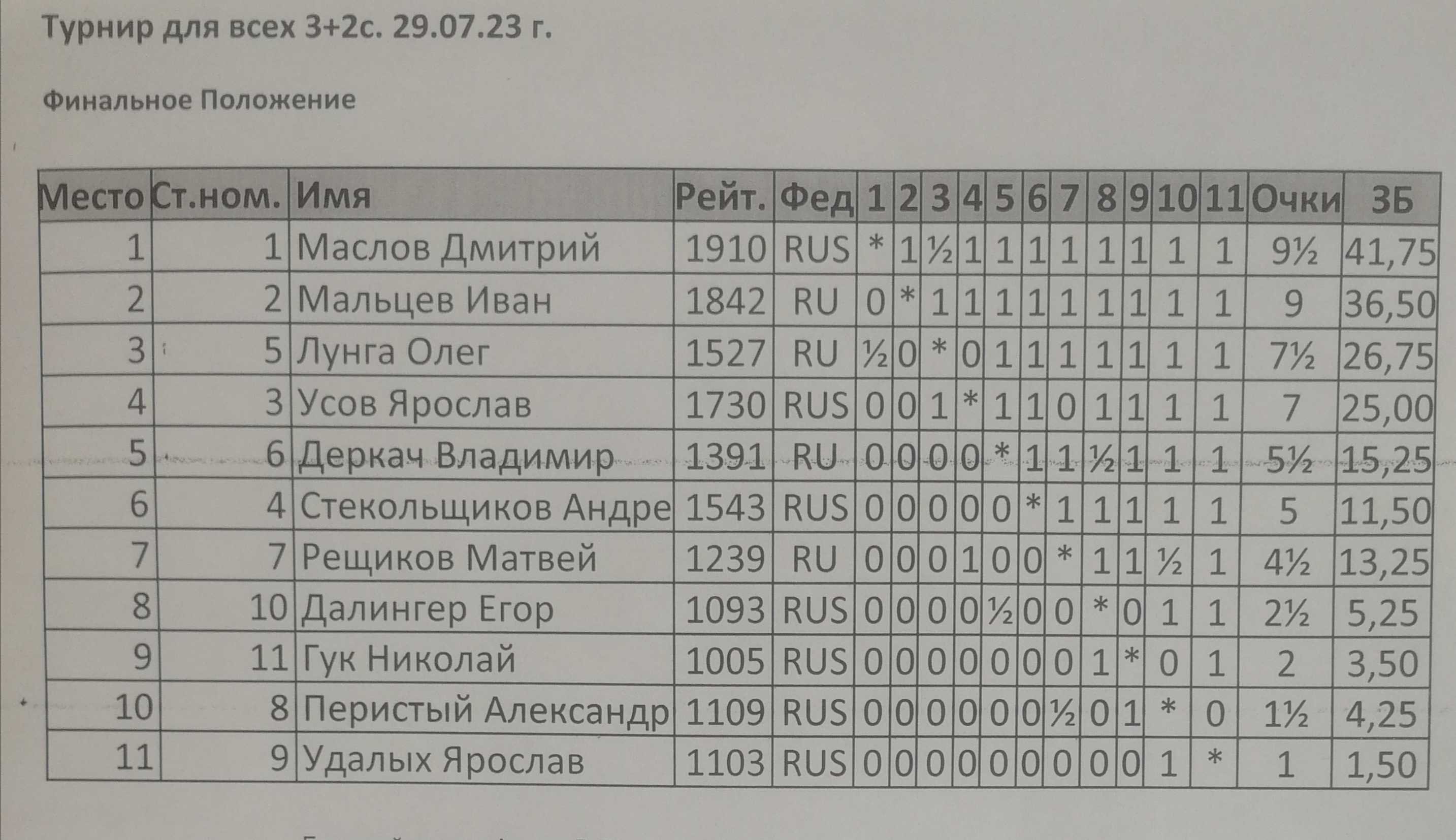 Итоги блиц-турнира в ГШК (29 июля 2023 г.)