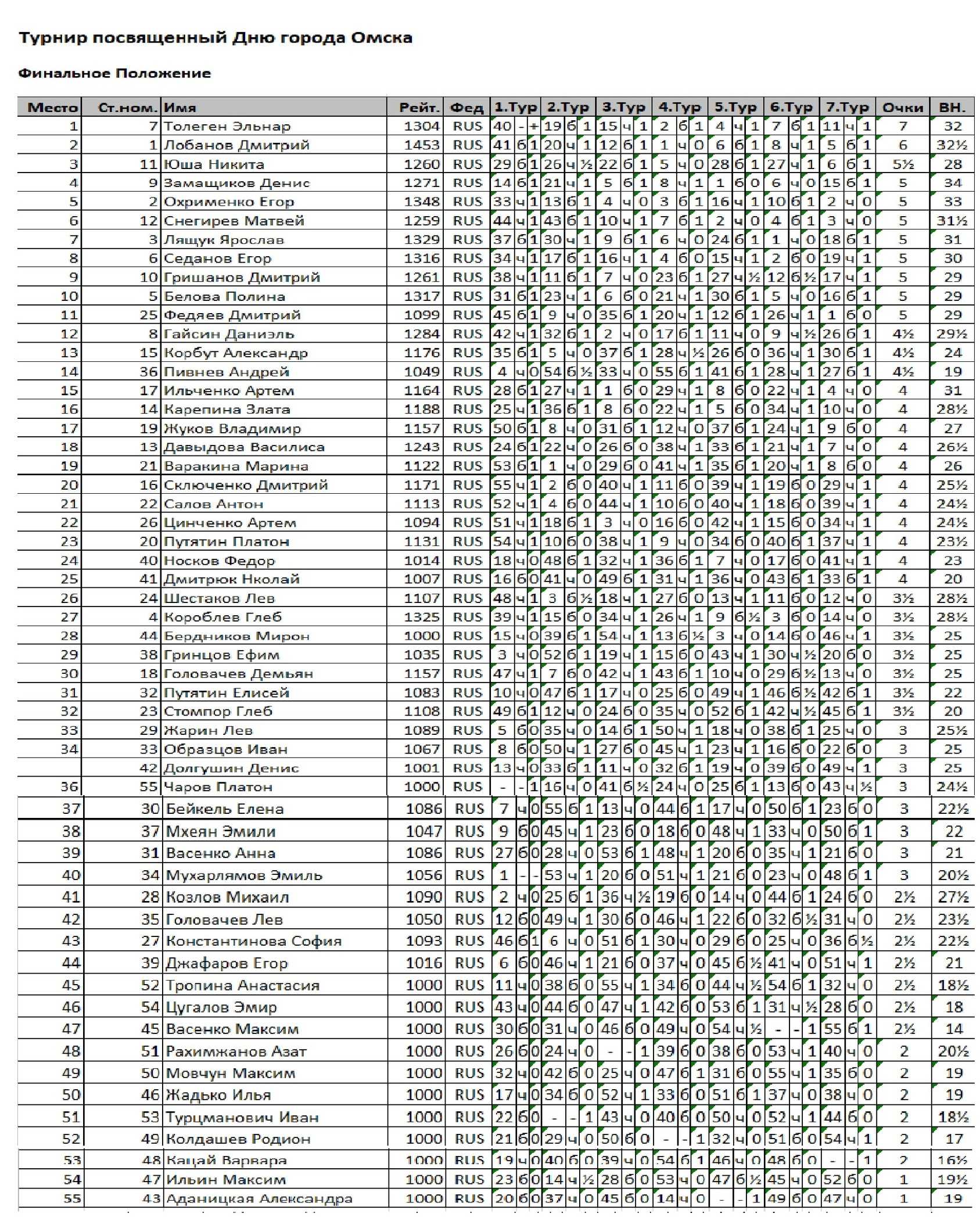 Накануне Дня города в Парке культуры и отдыха им. 30-летия ВЛКСМ на территории Семейного PARK cafe в Омске прошел турнир по быстрым шахматам для детей. К участию допускались ребята 2007 года рождения и младше с рейтингом ФШР ниже 1400. Контроль 8+3. Туров 7. Количество участников 55.