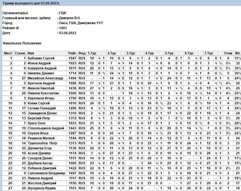 Турнир по быстрым шахматам в ГШК (3 сентября 2023 г.)