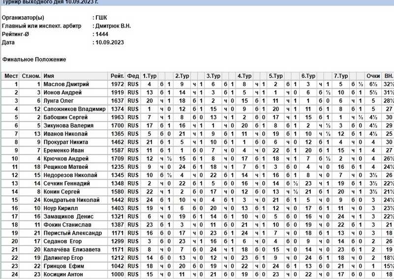 Турнир по быстрым шахматам в ГШК (10 сентября 2023 г.)