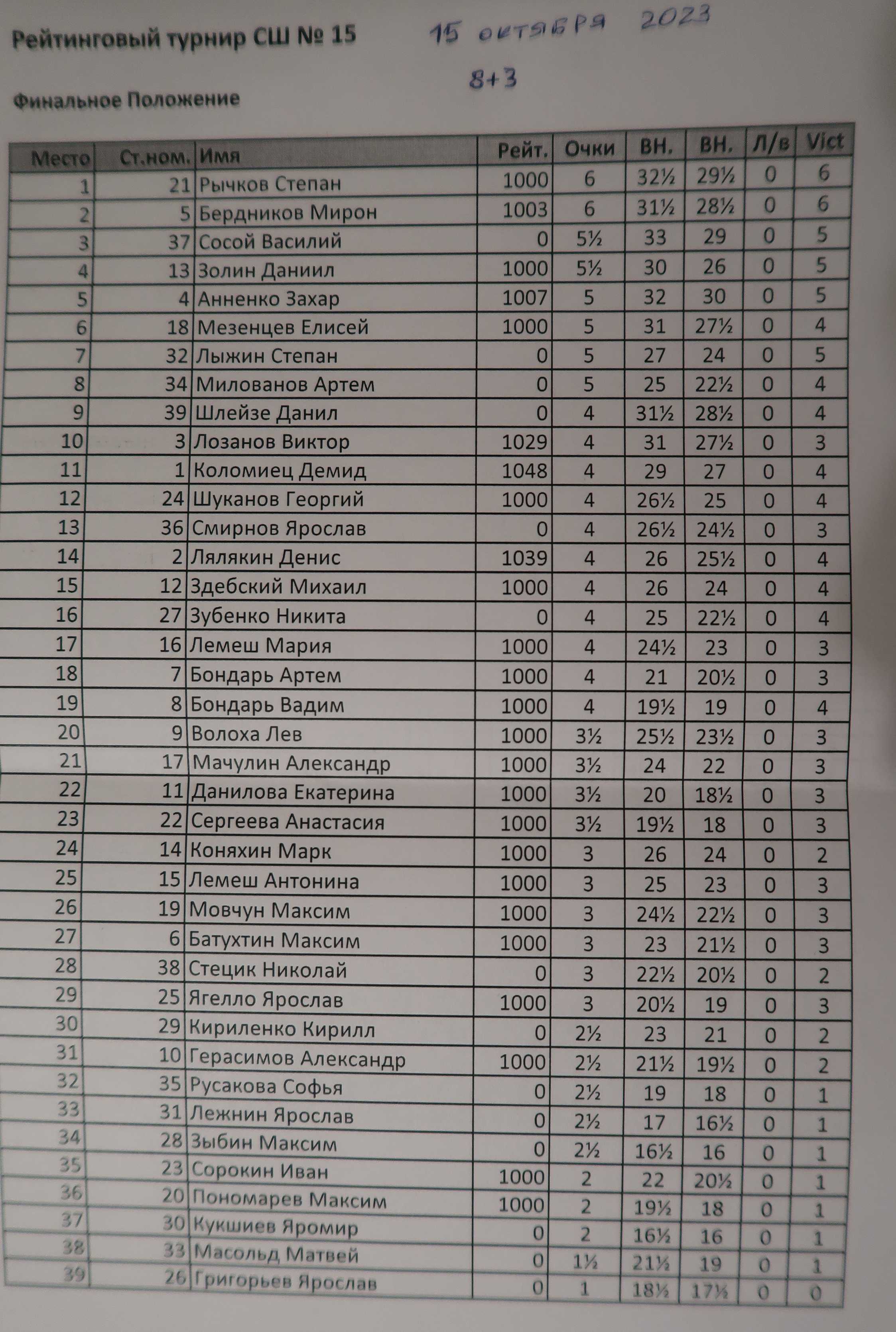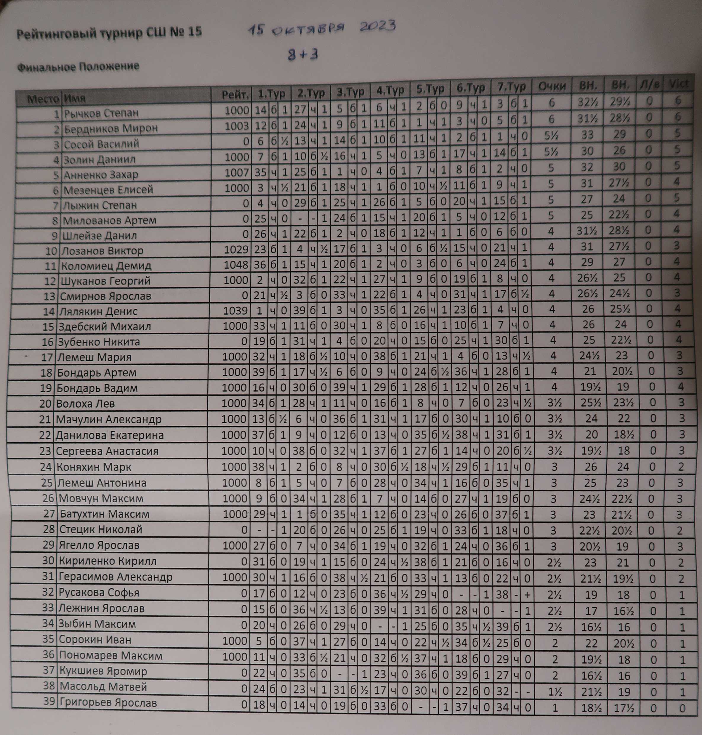 Рапид для начинающих в СШ №15 (15 октября 2023 г.)
