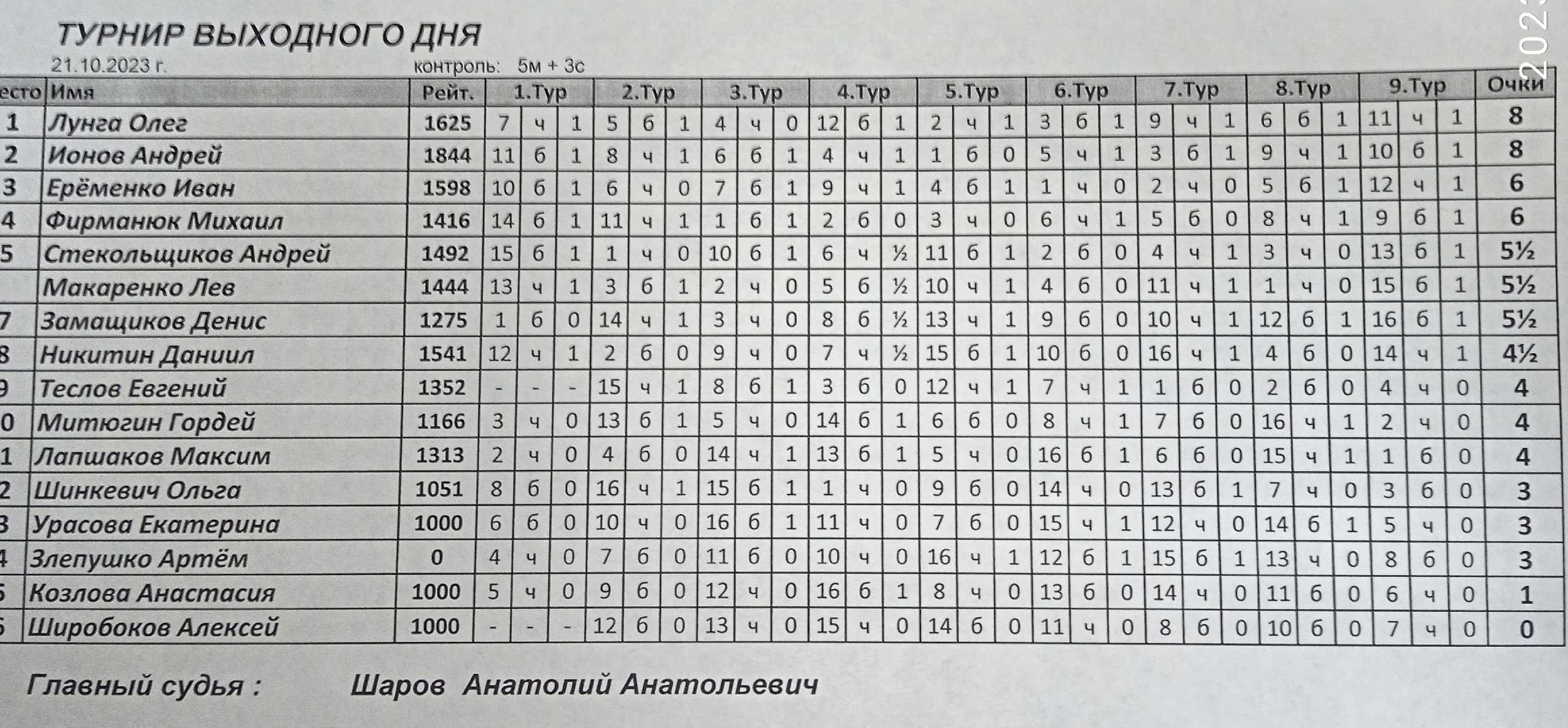 Блиц-турнир в ГШК (21 октября 2023 г.)
