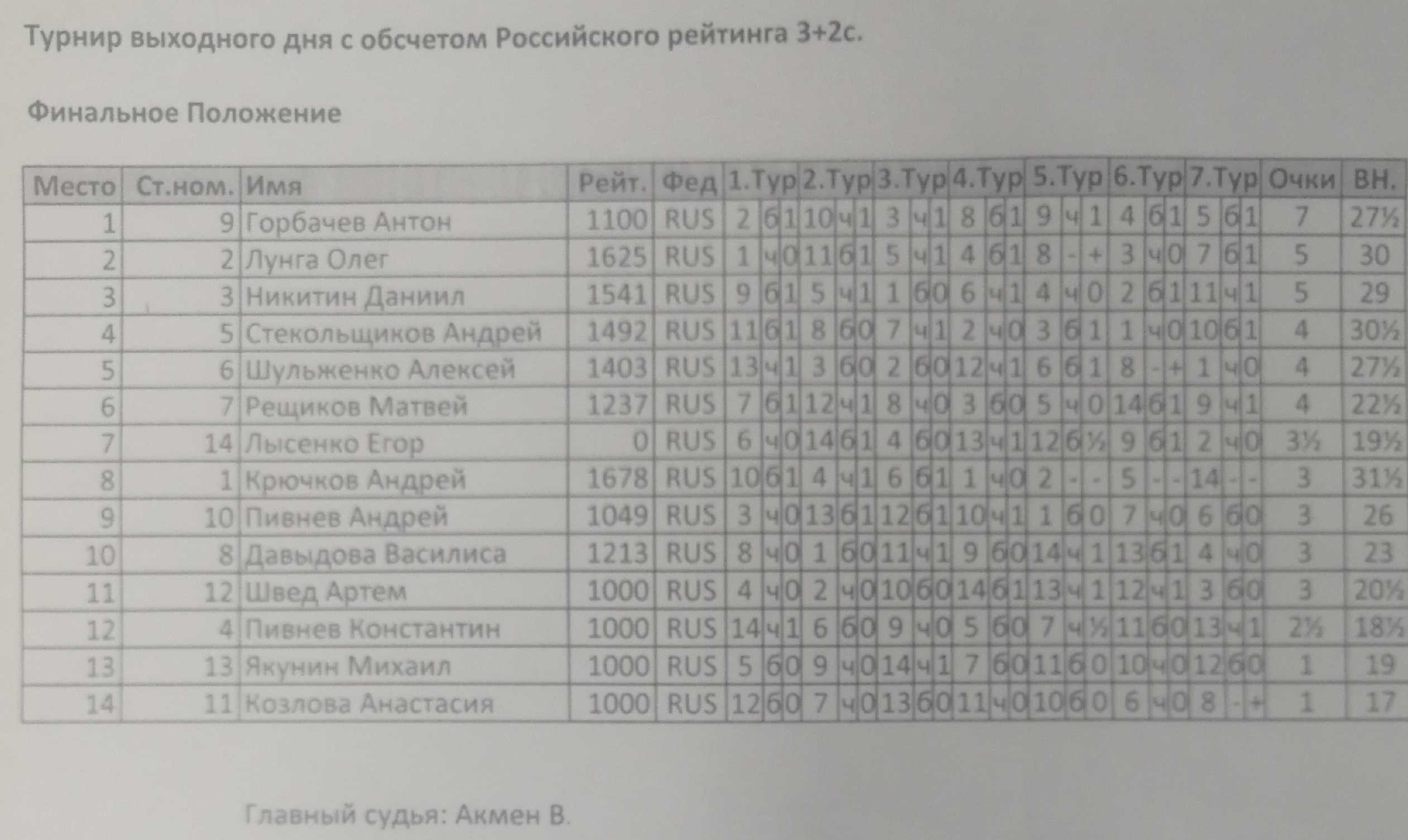 В ГШК на Дмитриева прошел турнир выходного дня по блицу для всех желающих. Контроль 3+2. Туров 7. Количество участников 14.