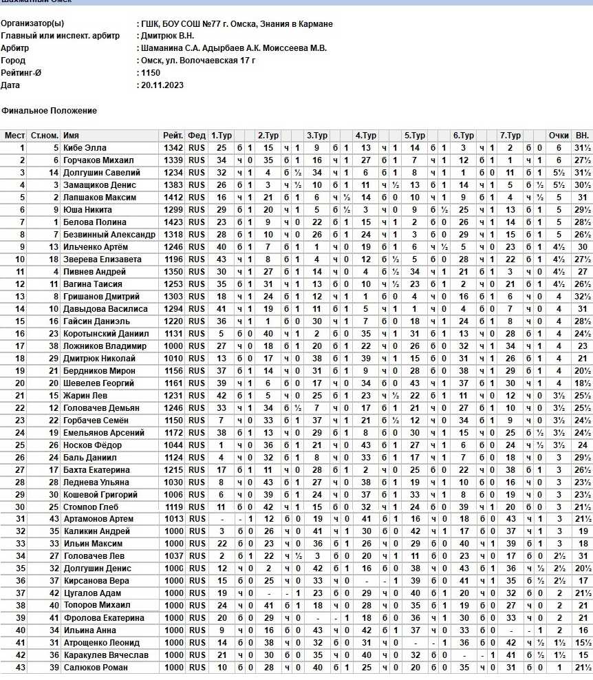 В Средней общеобразовательной школе №77 города Омска, на базе которой работает секция шахмат от Спортивной школы №15, прошел детский рапид проекта «Шахматный Омск».
