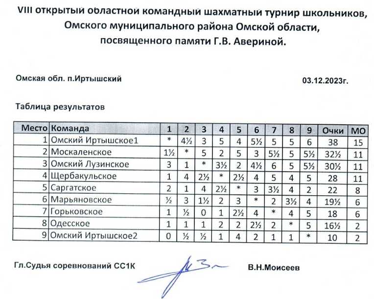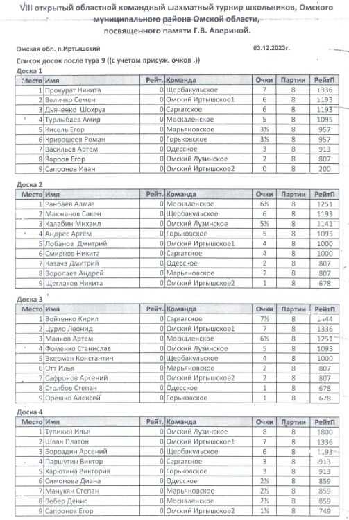 В поселке Иртышский Омского района Омской области 3 декабря прошел VIII областной шахматный турнир памяти Галины Васильевны Авериной. Соревновались команды школьников из районов Омской области: 4 мальчика + 2 девочки.
