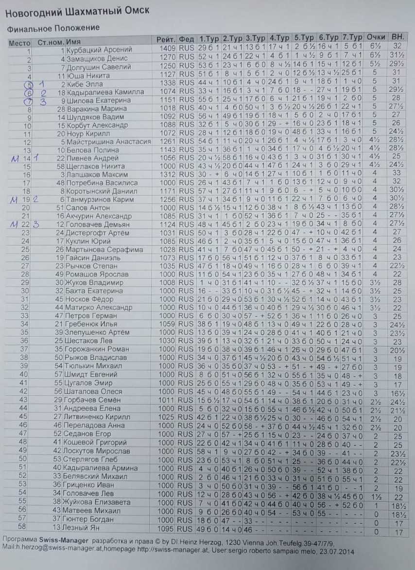 Итоги детского турнира «Новогодний шахматный Омск» (26 ноября — 17 декабря 2023 г.)