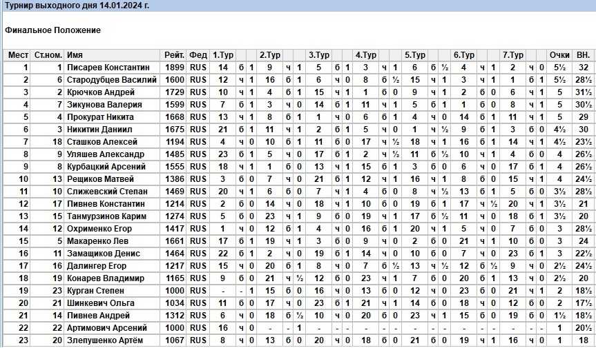 Быстрые шахматы в ГШК (14 января 2024 г.)