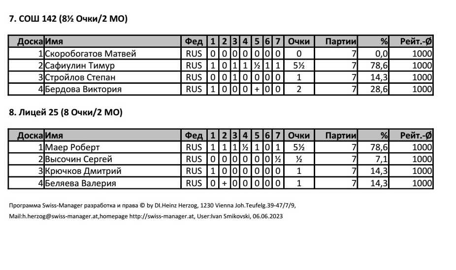 Хозяева соревнований одержали уверенную победу, потеряв только пол-очка на второй доске за все 7 туров. Коллектив возглавляла на 1 доске серебряный призер Первенства Омской области среди девушек до 15 лет Арина Мельникова. В шахматных турнирах традиционно представительницы прекрасного пола могут играть на мужских досках.