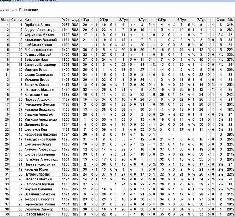 Быстрые шахматы в ГШК (21 января 2024 г.)