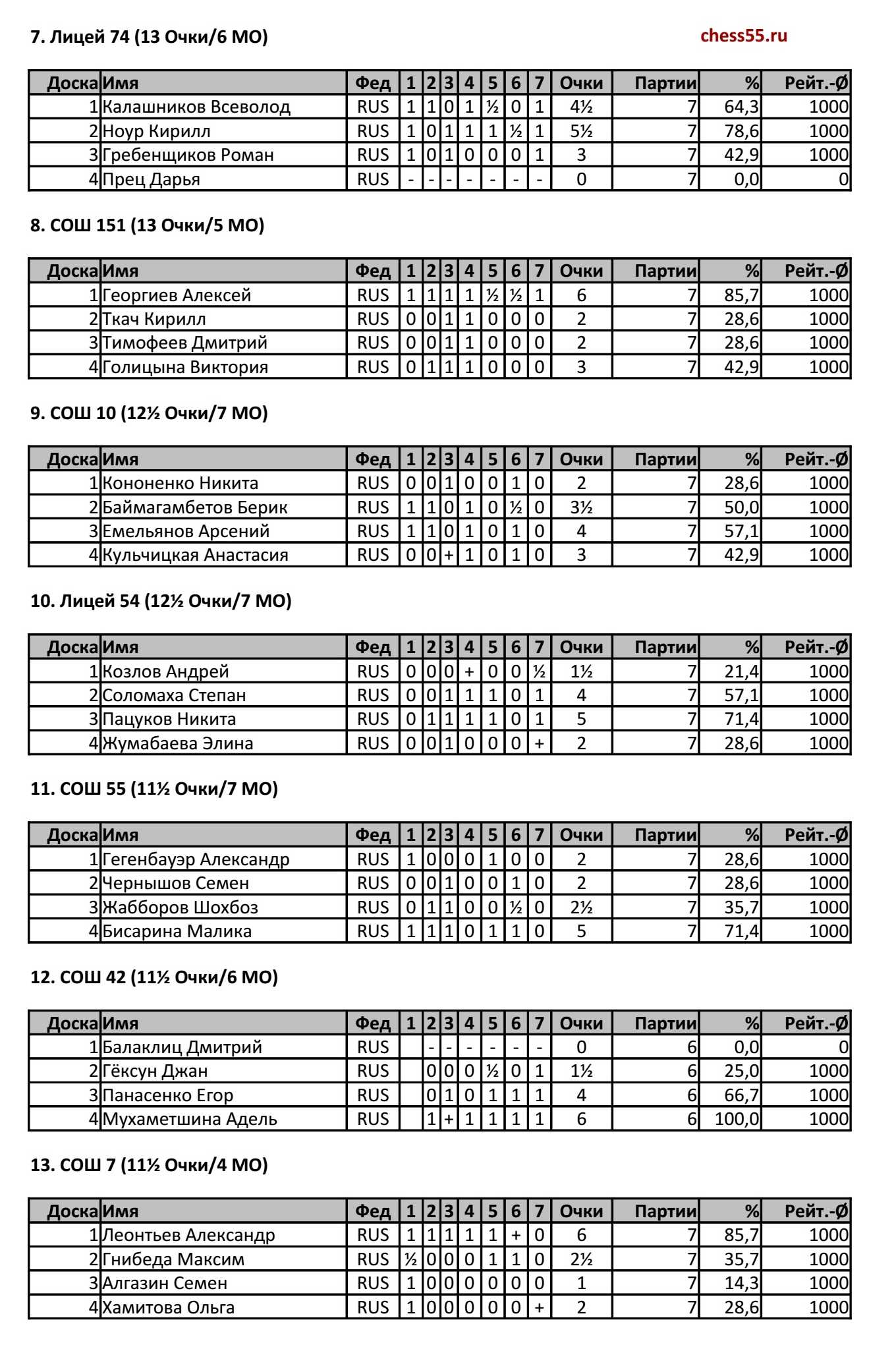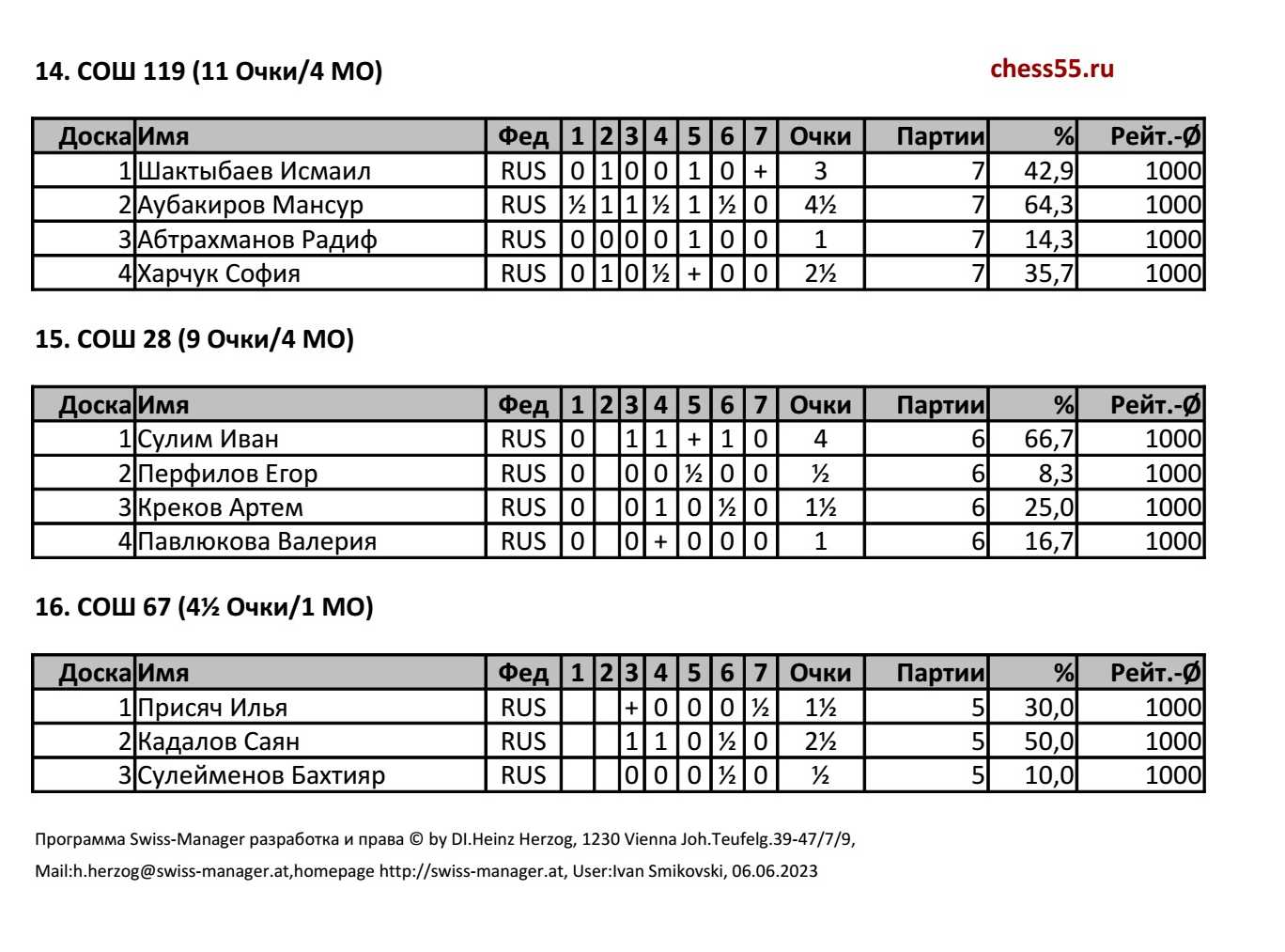 Состав команды: 3 доски (мальчики) + 1 доска (девочки). Контроль 8+3. Туров 7.