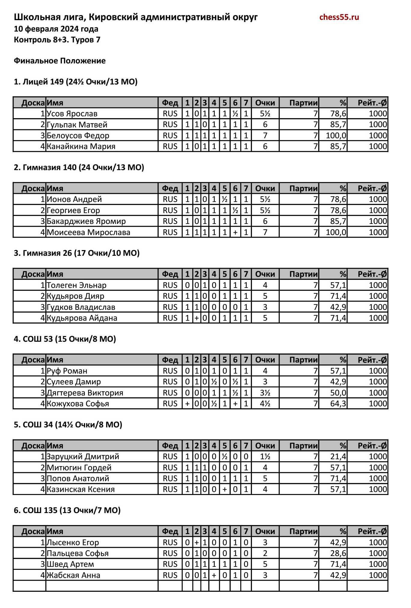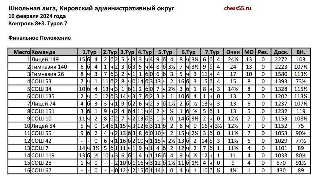 В субботу, 10 февраля 2024 года, состоялся окружной этап командного первенства «Школьная лига» по шахматам по Кировскому административному округу. В турнире по быстрым шахматам 16 школьных команд боролись за право представлять свой округ на общегородских финальных соревнованиях.