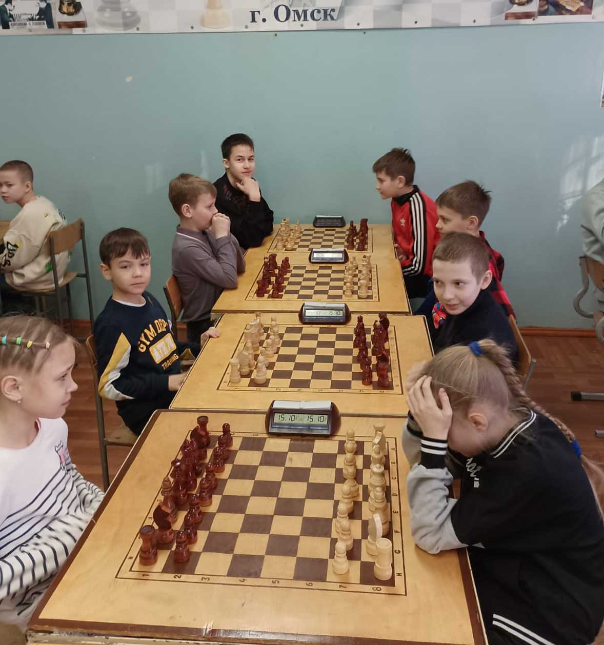 В Спортивной школе №15 города Омска 17-18 февраля 2024 года состоялся городской этап командного турнира общеобразовательных организаций «Белая ладья». За право выступать в финальных соревнованиях региона боролись 12 команд. Состав команды: 3+1. Возраст участников команды — 2010 год рождения и моложе. Контроль 15+10. Туров 7.