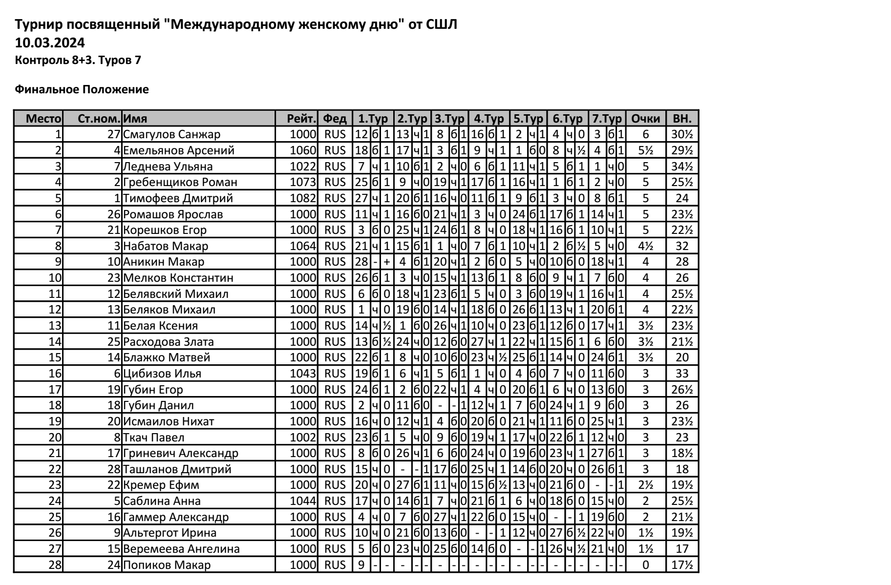 Турнир к 8 марта от Сибирской шахматной лиги (10 марта 2024 г.)