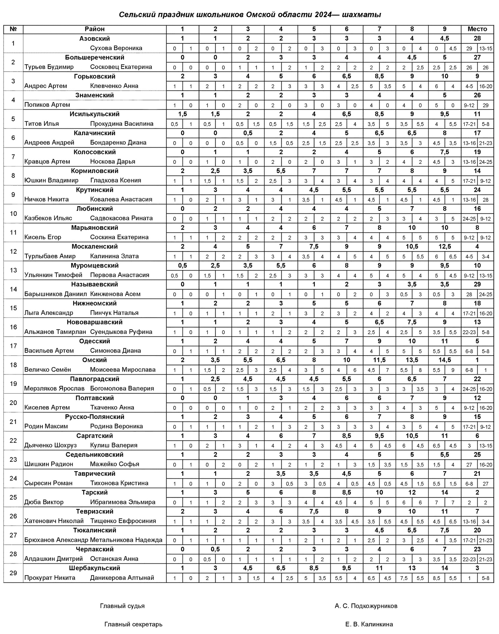 Представители почти всех районов Омской области съехались в р.п. Горьковское на Сельский праздник школьников, который провели с 17 по 19 мая 2024 года. Юноши и девушки играли в быстрые шахматы и боролись за победу своего района в соревновании.