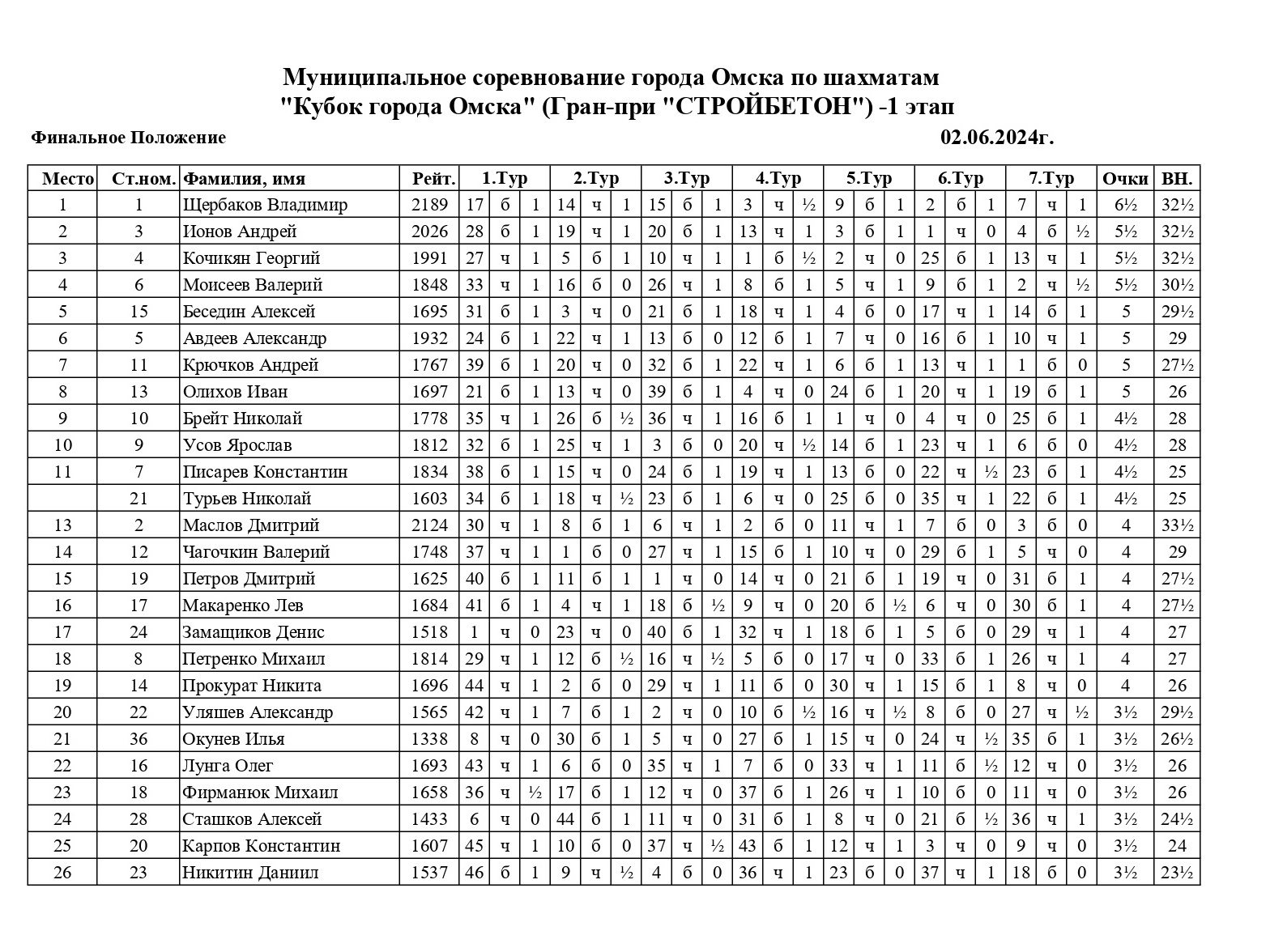 В Омском городском шахматном клубе 2 июня 2024 года началась серия турниров Гран-при «Стройбетон» по быстрым шахматам. Многоэтапное муниципальное соревнование является «Кубком города Омска». В каждом этапе разыгрываются зачетные очки, по сумме которых определяются участники финального турнира.