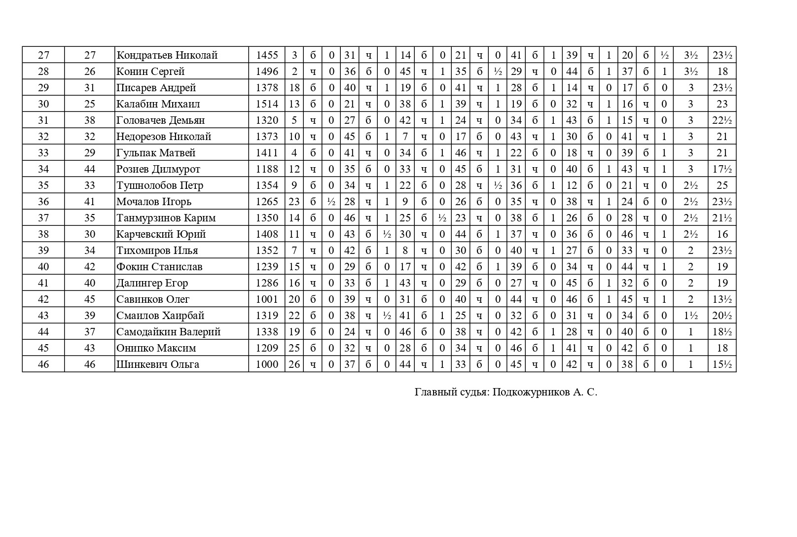 Ограничения по рейтингу: ФШР выше 1200. Место проведения: ГШК на Дмитриева. Контроль 10+5. Туров 7. Количество участников 46.