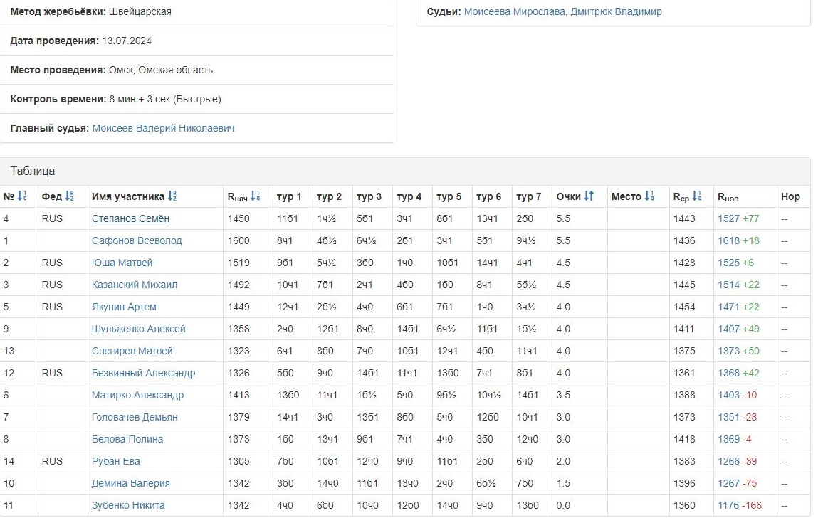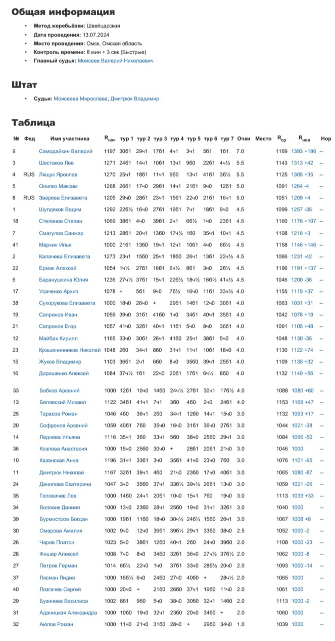 В Парке культуры и отдыха им. 30-летия ВЛКСМ на территории Семейного PARK cafe 13 июля 2024 года прошел коммерческий турнир для детей по быстрым шахматам. В зависимости от рейтинга участники были разделены на лигу А и Б. Контроль 8+3. Туров 7.