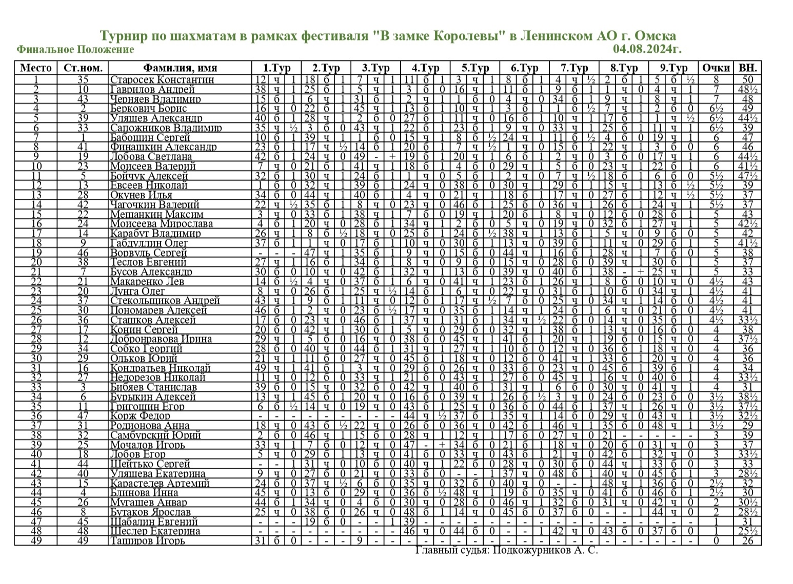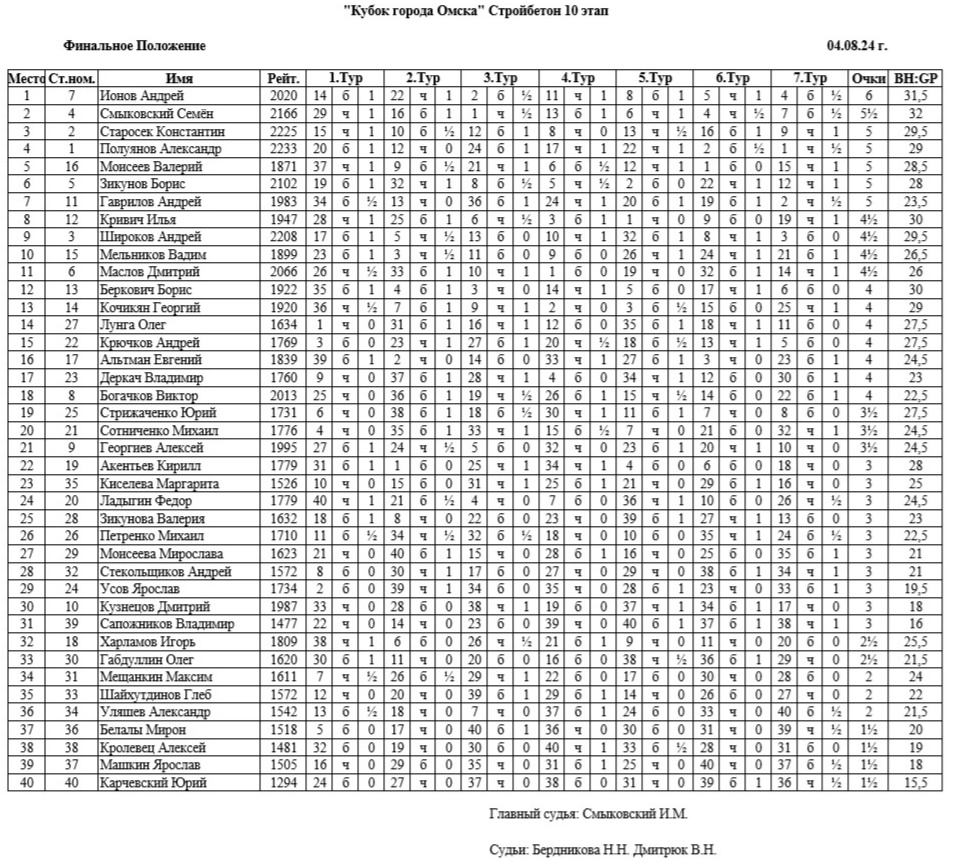 В воскресенье, 4 августа 2024 года, в Омском городском шахматном клубе прошел десятый этап «Кубка города Омска» - Гран-при «Стройбетон» по быстрым шахматам, в котором играли участники этапа детского Кубка России «Мемориал Я.Д.Русакова» и их тренеры.