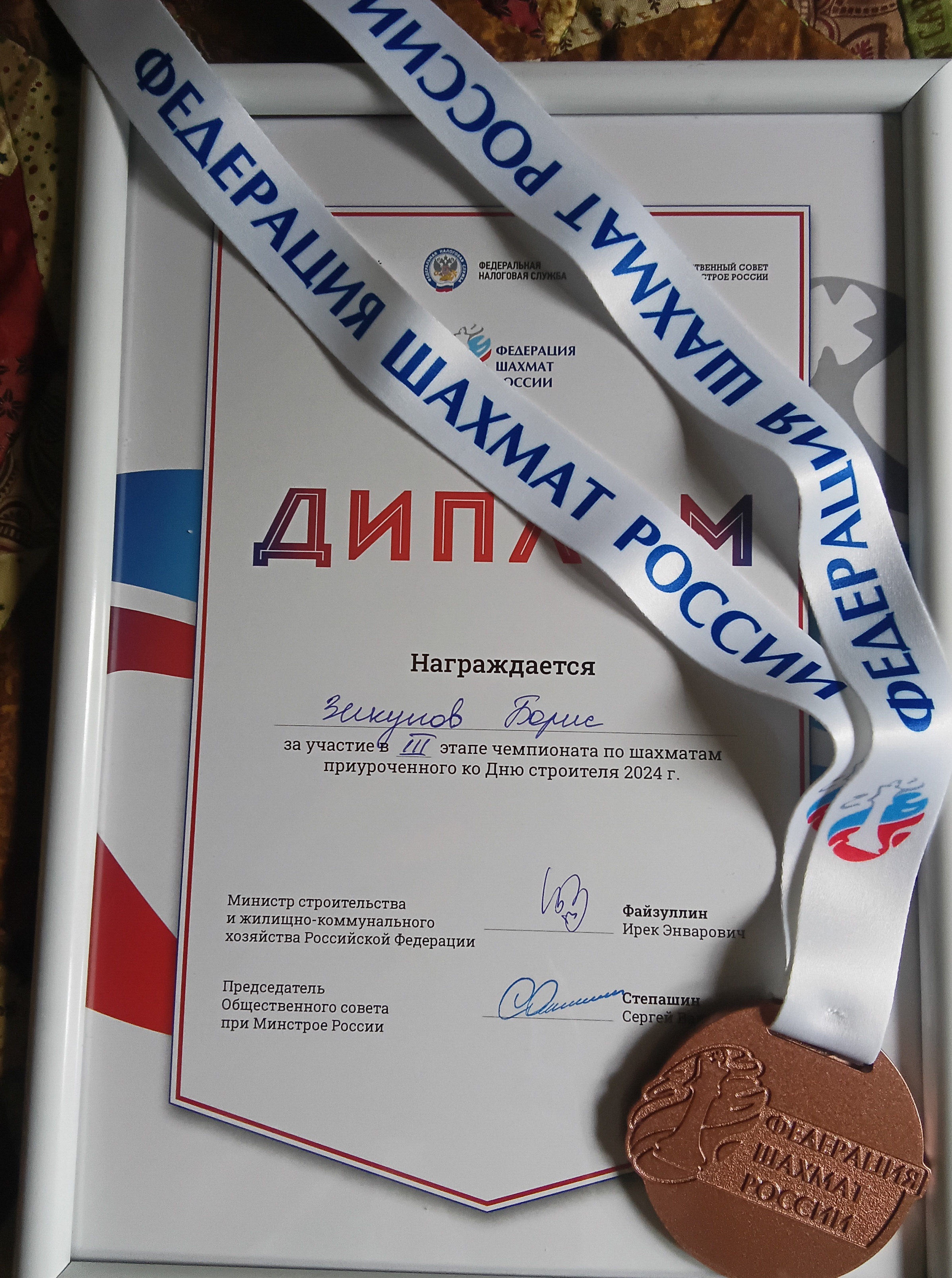 В преддверии Дня строителя в Москве в Центральном доме шахматиста имени М.М.Ботвинника 7 августа 2024 года состоялся блицтурнир, в котором встретились сотрудники Минстроя России и Федеральной налоговой службы. По итогам дружеского матча определили победителей и призеров каждого ведомства. Среди шахматистов ФНС, принявших участие в турнире, были специалисты из Омской области Борис Зикунов и Александр Шефер.