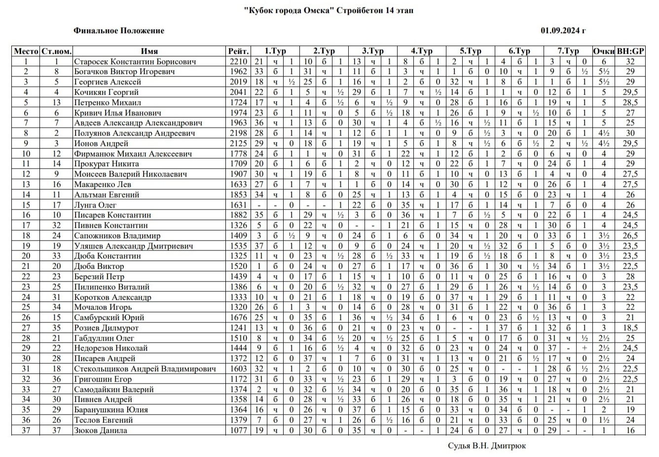В День знаний, 1 сентября 2024 года, в шахматном клубе на Дмитриева прошел заключительный отборочный этап «Кубка города Омска» - Гран-при «Стройбетон» по быстрым шахматам. Контроль 10+5. Туров 7. Количество участников 37.
