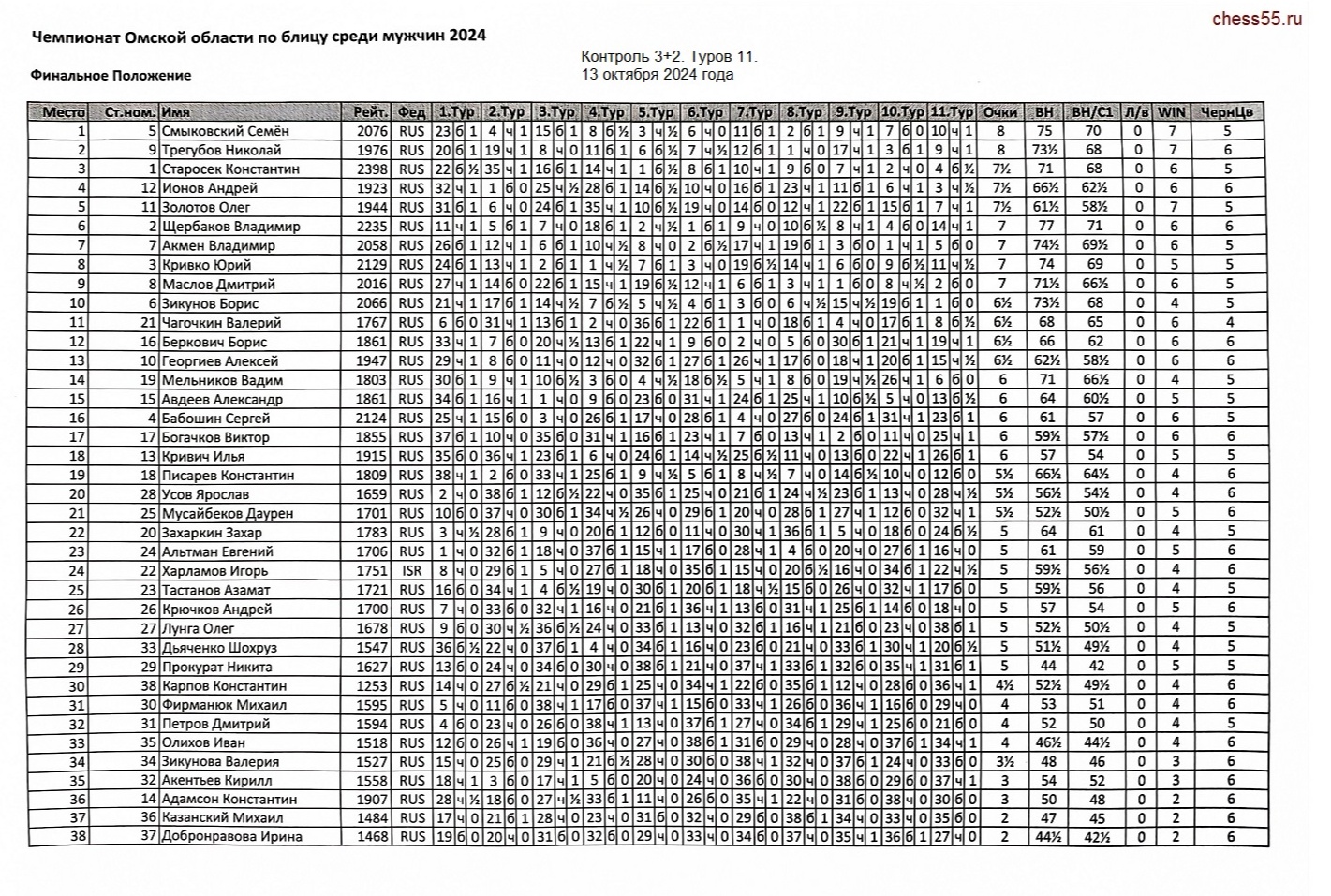 Контроль 3+2. Туров 11. Количество участников 38.