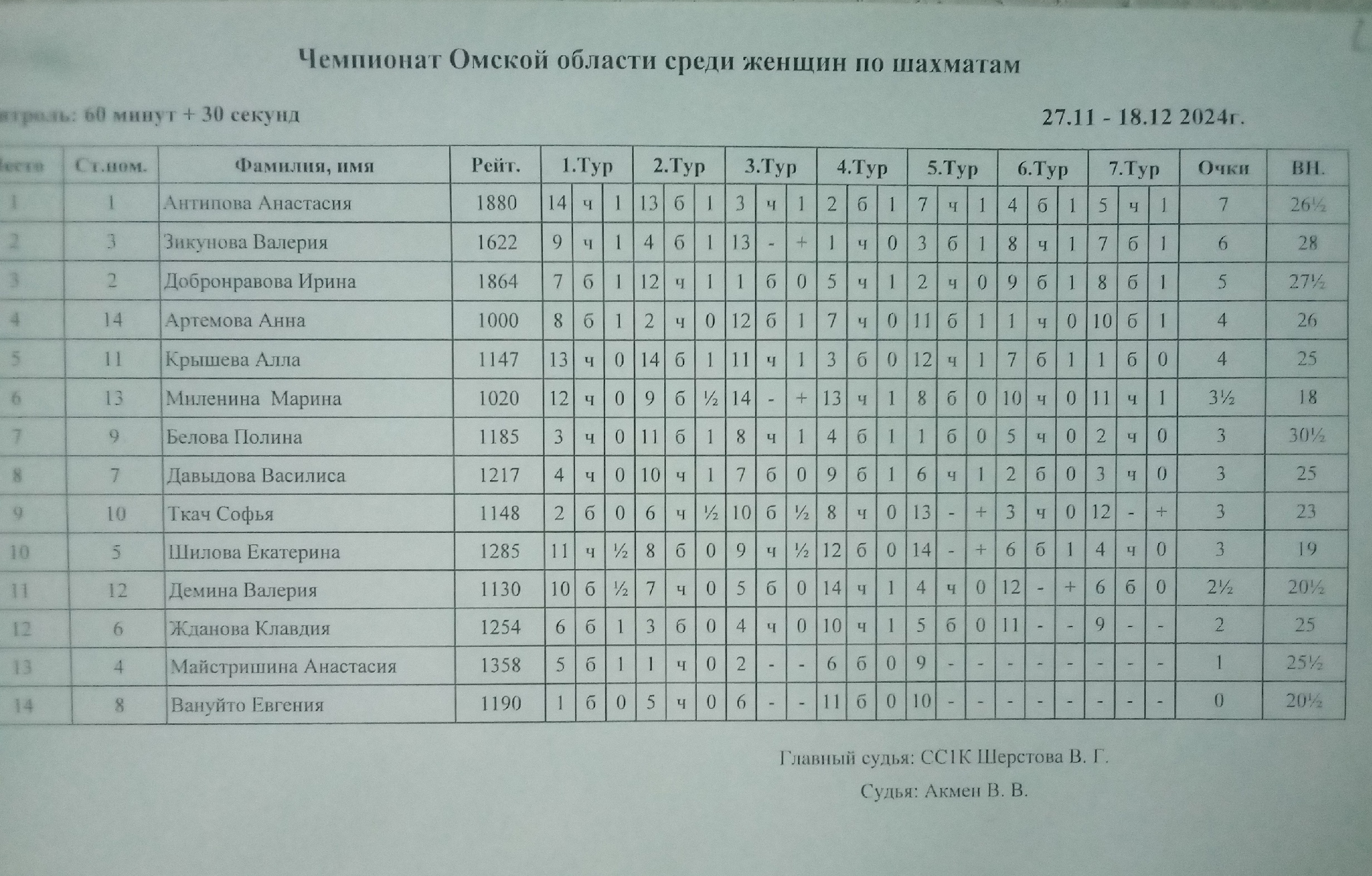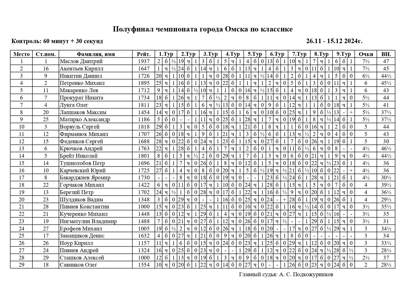 Ранее в игровых залах Спортивной школы №15 на Дмитриева завершился Полуфинал чемпионата города Омска по шахматам, который проходил с 26 ноября по 15 декабря 2024 года. Контроль 60+30. Количество туров 9. Участников 29.